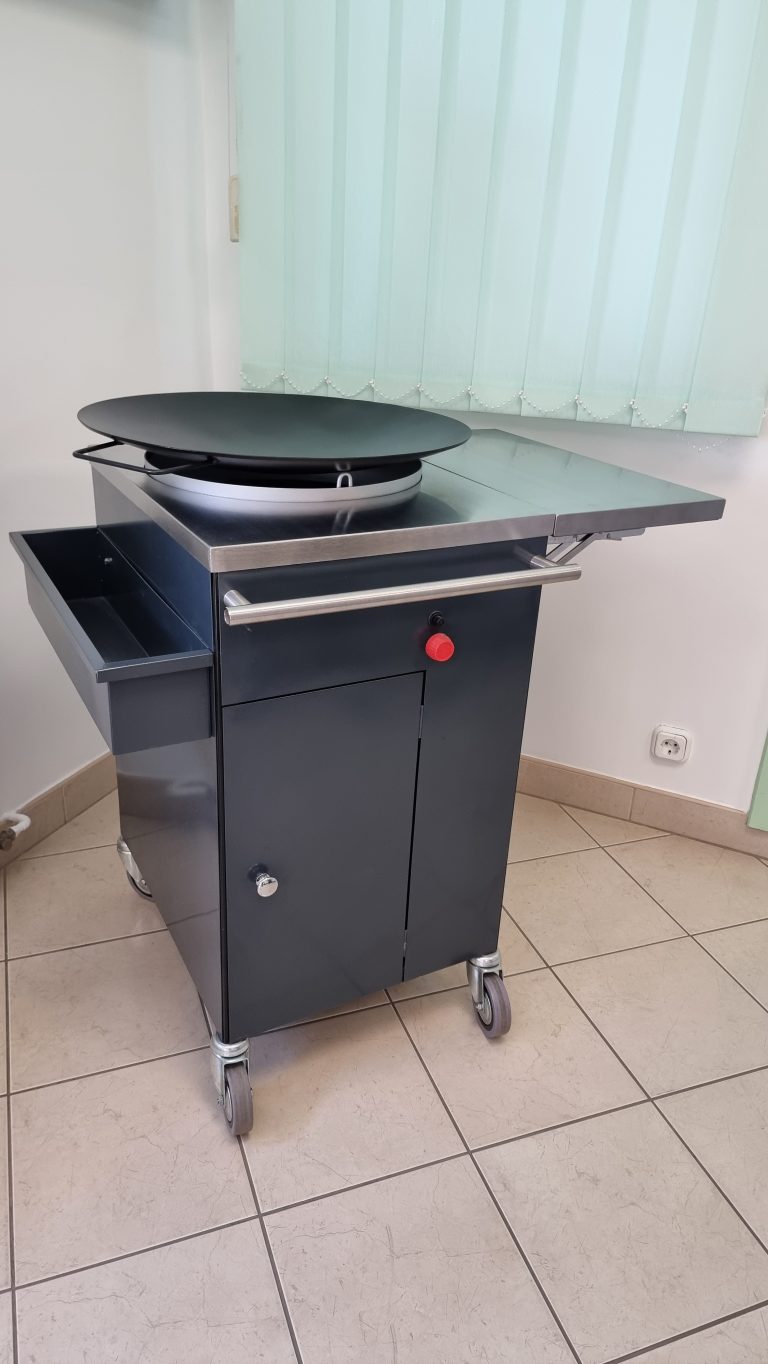 TEFLON® bevonatú, vaslemez sütőfelülettel rendelkező grill kocsi A grill kocsi semmilyen csatlakozást (gáz, áram) NEM igénylő, önállóan működő sütő főző berendezés, ezért praktikusan használható kerti,